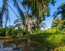 Our last day, and one more place to visit. We arrive at the gate , where we have to wait quite a while because it seems no one expects tourists here. While waiting, we spot a Togo Lidless Skink (Panaspis togoensis). When we finally get in, the excitement grows! It doesn’t take long before Dickson spots the first frog we’re hoping to find! A juvenile De Roo's Giant Frog (Conraua derooi). It is small, but we’re still happy to have seen this special species. But Dickson and our local guide don’t give up. They make their way through a huge drainage pipe and find an individual that can be really called De Roo's Giant Frog. What a gorgeous frog, absolutely spectacular!